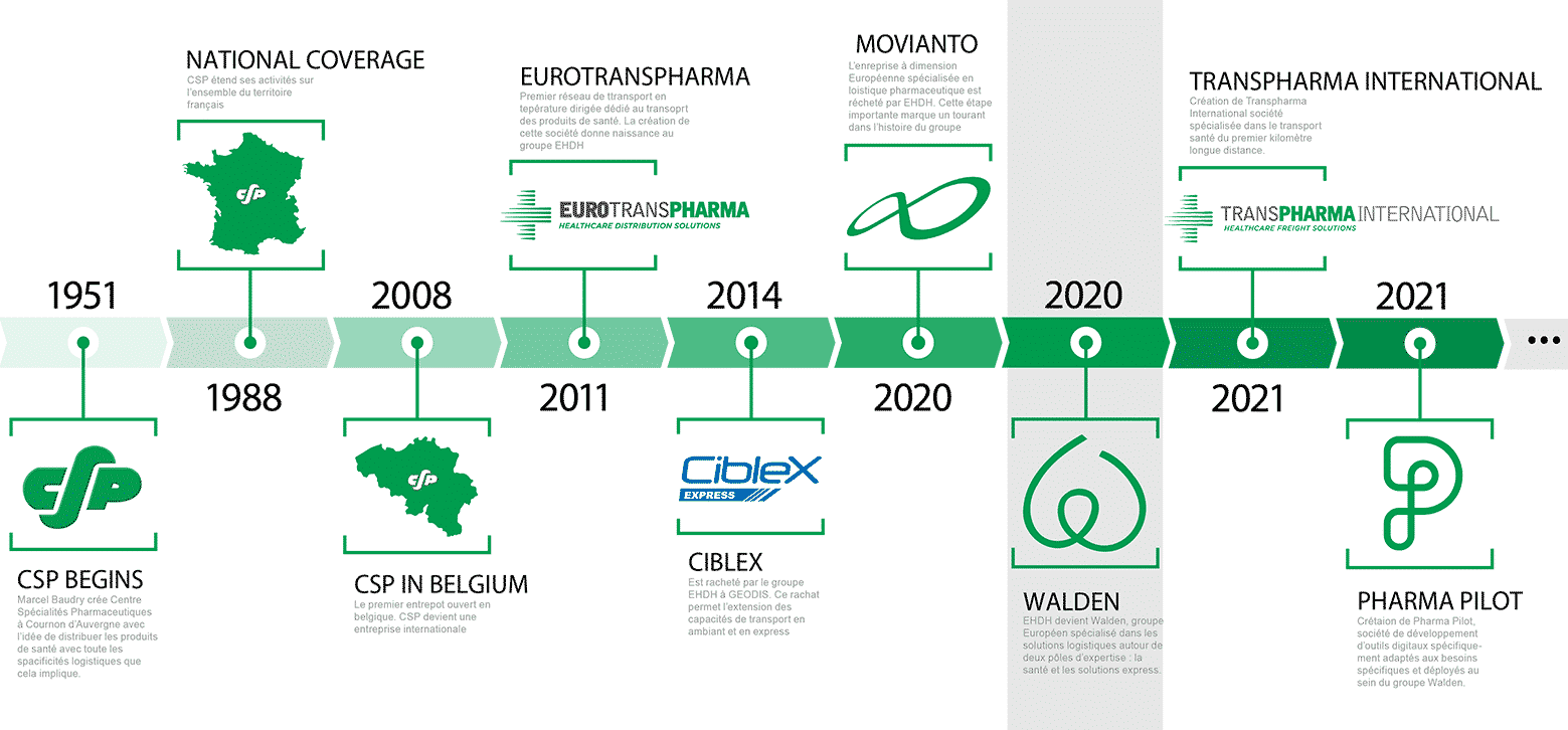 De geschiedenis van de Walden Group begint in Auvergne in 1951, met de oprichting van het Centre Spécialités Pharmaceutiques (CSP) door Marcel Baudry. Zijn doel was de distributie van geneesmiddelen te vergemakkelijken.
